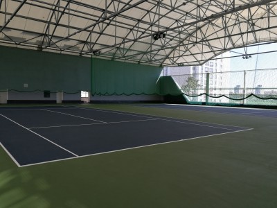 На данном объекте созданы тенеобразующая и дождеукрывающий тент, что создает комфортные условия для игры в теннис.
