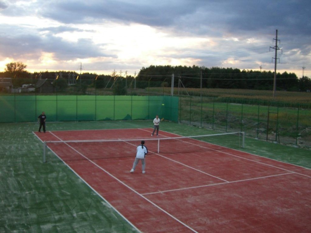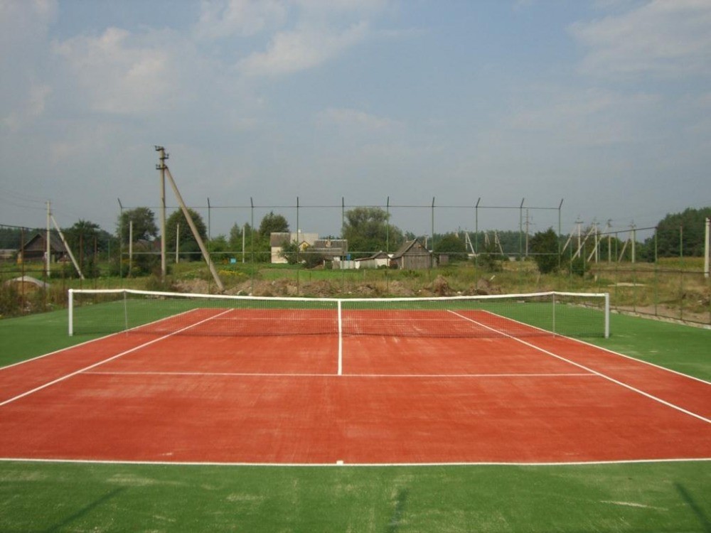 В покрытии использована искусственная трава, с предельно высокой на сегодня плотностью ворса, что позволит хозяевам долгие годы наслаждаться игрой в теннис.